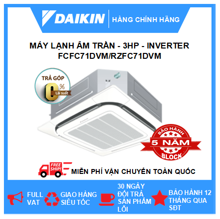 Máy lạnh âm trần 3HP (3 ngựa) chính hãng Daikin, trả góp 0%
