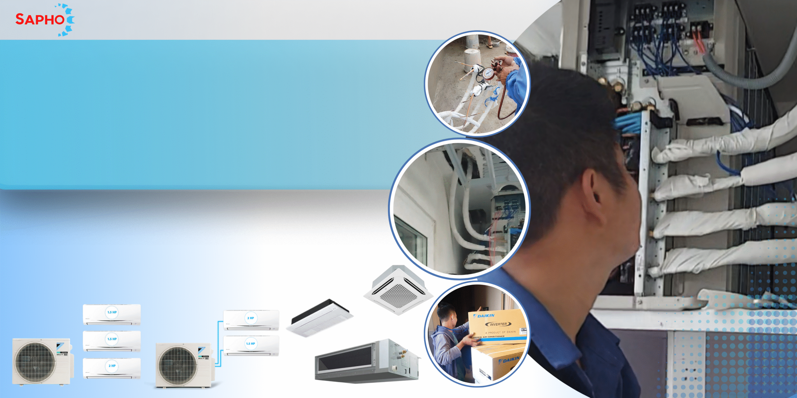 + Sapho hiện là một trong những đại lý phân phối chính thức của các hãng điện tử danh tiếng như Daikin, Mitsubishi, Reetech, Panasonic, Toshiba, Carrier…