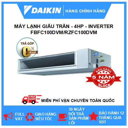 Điều hòa giấu trần nối ống gió 4HP (4 mã lực) Daikin Inverter, trả góp 0% lãi suất